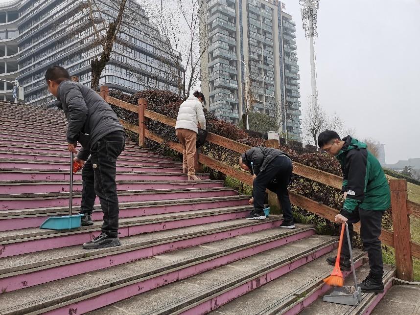 學習告一段落后,支部組織黨員同志和志愿者帶著清潔工具,來到南濱江濕地公園,清理階梯及綠地上隨意丟棄的煙頭、樹枝、落葉等垃圾,美化公共環境,用實際行動踐行雷鋒精神,服務人民。